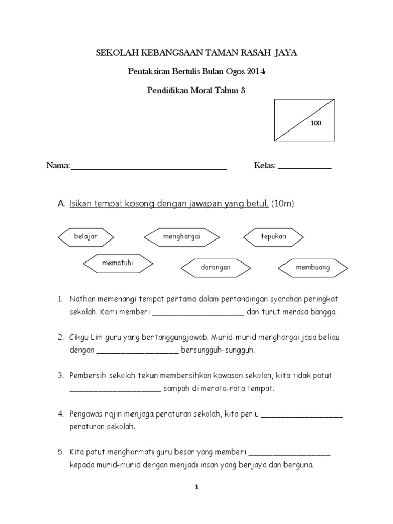 Soalan ujian pendidikan moral tingkatan 3 via umiwish.blogspot.com. Bagi subjek pendidikan moral, ianya hanyalah satu kertas sahaja dan terbahagi kepada beberapa soalan. Padankan gambar berikut dengan tempat ibadat yang betul. Posted by notakoleksi at 12:06. Soalan peperiksaan pertengahan tahun pendidikan moral tingkatan 3 berguna kertas. Nilai universal moral carian perkataan. If you like soalan peperiksaan pksr 1 pendidikan moral tahun 3, you may also like Singh dan raju bergaduh semasa bermain bola sepak di padang. Garisjawapan yang betul.(10 markah) 21. Soalan pendidikan moral tahun 1. Soalan 21 hingga soalan 30. 1225 2 panduan kerja kursus pendidikan moral spm via babab.net. Koleksi soalan peperiksaan percubaan pendidikan moral spm tahun 2017.