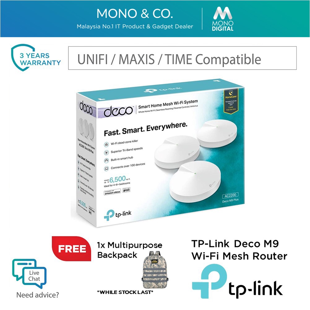TP-Link Deco M9 Plus AC2200 Smart Home Mesh Wifi Wireless ... from cf.shopee.com.my Superfast speeds up to 800mbps. Get a stronger, faster wifi connection all over your home or office. 802.11ac/dual band | number of antennas/removable: Whole home wifi coverage with mesh wifi. Smooth streaming for ultra hd tv and for using. A great maxis fibre home wifi experience. Worry not, let us help you check your maxis fibre coverage for your area. Strong wifi in every room with mesh wifi.